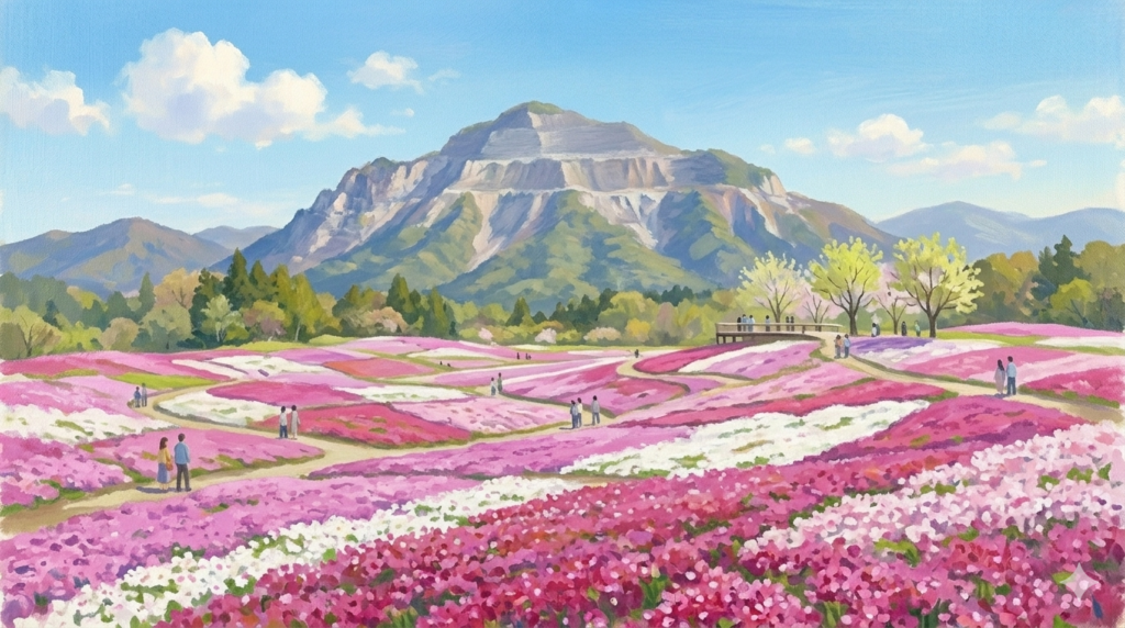 埼玉県秩父市のシンボル「武甲山」の麓に広がるのが、羊山公園の「芝桜の丘」です。約1万7,600平方メートルという広大な敷地に、9種類・40万株以上の芝桜が植えられており、春の秩父を代表する絶景スポットとなっています。 武甲山を望む、花のパッチワー... -